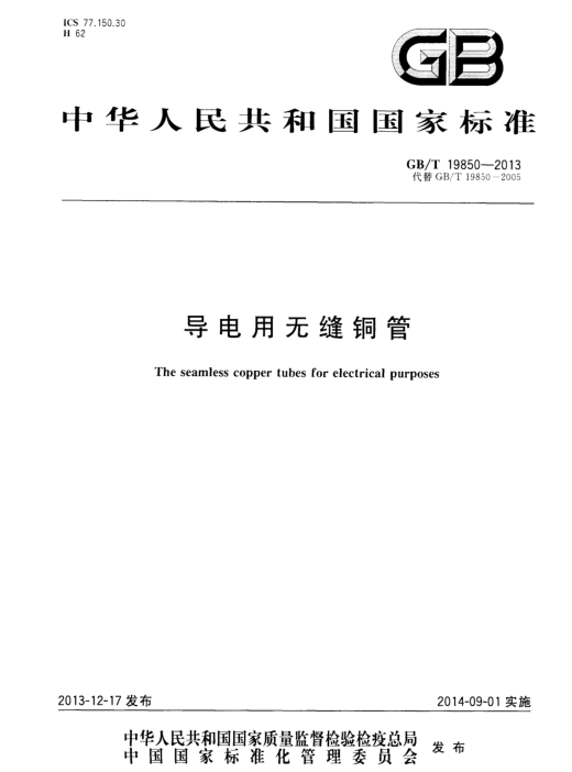 GBT 19850-2013 導(dǎo)電用無縫銅管